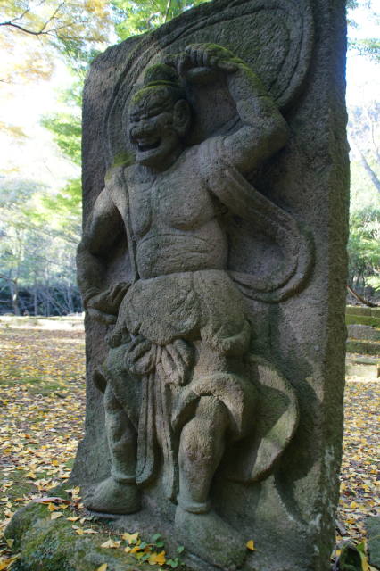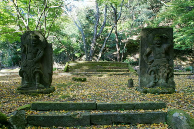 旧千燈寺跡は六郷満山を創建した仁聞の入定の地という伝説があります。仁聞は両子寺、富貴寺など28の寺院を開基したと伝えられています。旧千燈寺跡はその後、大友宗麟の焼き討ちによって廃寺になり、今は寺の石垣、仁王像などが残されています。周辺には仁聞の墓と伝えられる仁聞国東塔、1000体近い五輪塔群などが残されており、千燈寺跡は県指定史跡に、仁王像、仁聞国東塔は県指定有形文化財になっています。旧千燈寺跡は千燈岳、不動山の中腹にあるのですが、六郷満山ふれあい森林公園として整備され、遊歩道と駐車場が作られています。県道沿いには国東六郷満山霊場第二十三番札所の千燈寺がありますが、旧千燈寺と関わりのあるお寺で、県指定有形文化財に指定されている千燈寺石造宝塔、木造如来坐像などがあります。