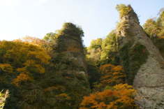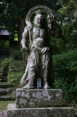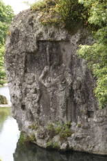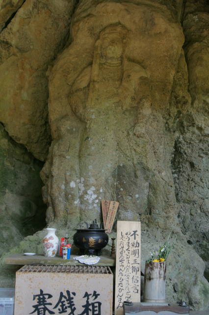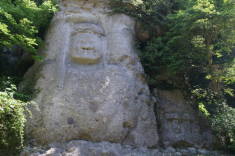 鬼が一夜で築いたという急な石段の先に2体の磨崖仏があります。