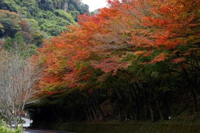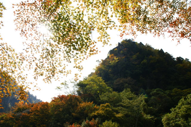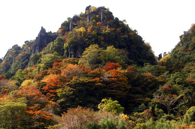 深耶馬溪にある耶馬溪の中で一番人気のある紅葉の名所です。一目八景は八つの景色が一望できることからこう呼ばれています。周囲には群猿山、鳶果山、四手の尾、夫婦岩、雄鹿長尾の峰、烏帽子岩、仙人岩、海望嶺と名前がつけられた八つの奇岩があります。一目八景には展望台、お店、宿泊施設、温泉などもあり、遊歩道を歩くと八景の名前が矢印とともに紹介されています。紅葉シーズン中には道脇の紅葉がライトアップされます。