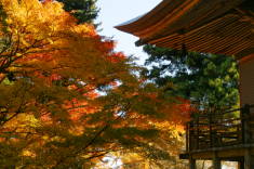 国宝に指定されている大堂、秋の紅葉も美しい。
