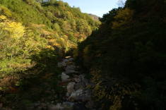 藤河内渓谷の川の地形は変わっていて、甌穴などを見る事ができます。秋は紅葉で美しくなります。